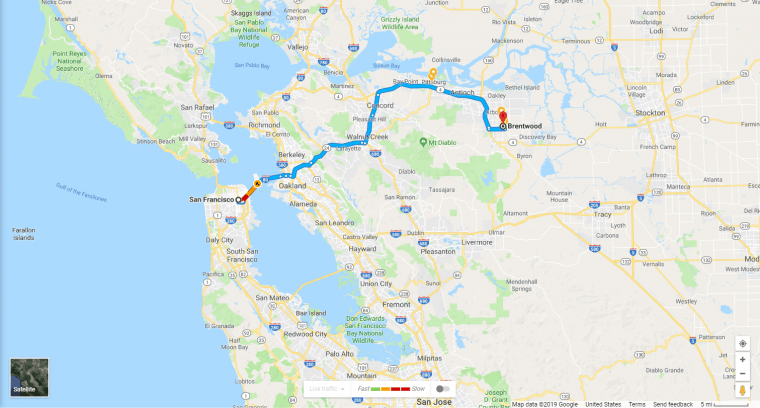 You'll find Brentwood about an hour east of San Francisco, depending on the route you take.